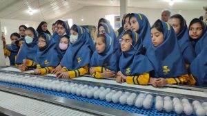 30 دانش آموز شرکت کننده در این بازدید با قرارگرفتن در قسمتی از خط بسته بندی، با برداشتن تخم مرغ و قراردادن آن در پک بسته بندی تجربهای متفاوت برای خود رقم زدند.